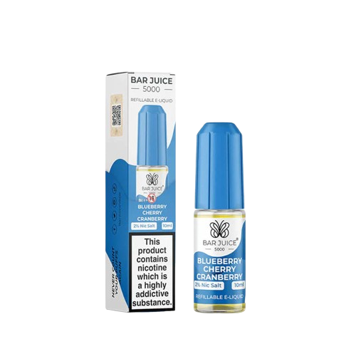 The Bar Juice 5000 – Blueberry Cherry Cranberry delivers a triple berry explosion with every puff. Enjoy the sweet and tangy combination of ripe blueberries, luscious cherries, and zesty cranberries in a 10ml nicotine salt e-liquid designed for a smooth and satisfying vape. Perfect for use in refillable pod kits and MTL devices, its 50/50 VG/PG blend ensures rich flavor and discreet vapor production for all-day enjoyment.