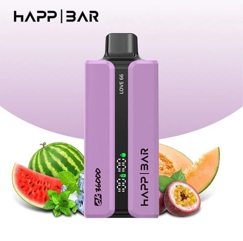 The Happ Bar 36000 – Love 66 offers an unforgettable vaping experience with a delicious blend of juicy watermelon, sweet melon, exotic passionfruit, and a hint of refreshing mint. Designed for ultimate convenience, this disposable vape delivers up to 36,000 puffs, making it perfect for extended use without refilling or recharging. With its ergonomic design and smooth nicotine salt formula, it’s ideal for vapers who crave a bold fruity-cool profile in a high-performance device.