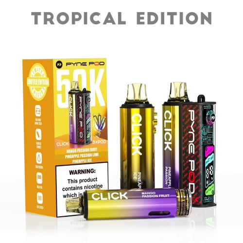 Three exotic tropical flavors in one powerful device: Mango Passion Fruit, Pineapple Passion Lime, and Pineapple Ice. The Pyne Pod 50K delivers up to 50,000 puffs with smooth 2% nicotine salt satisfaction and a sleek rechargeable design.